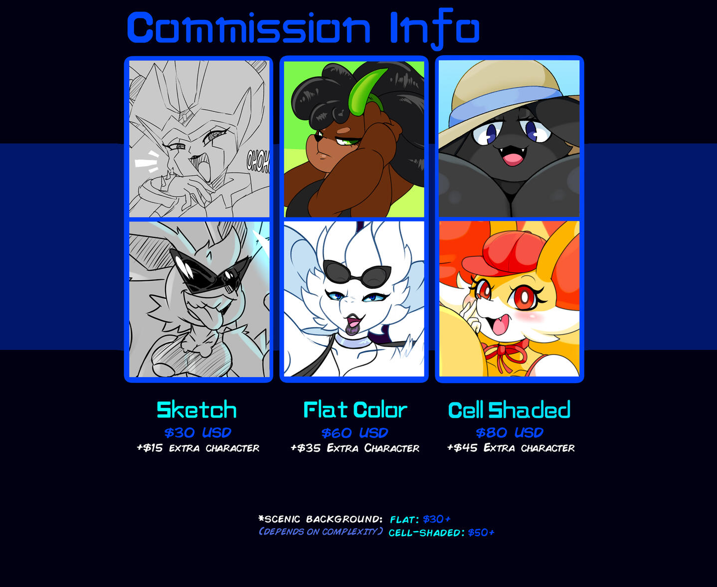Flat BG: $30+ / Cell-Shade BG: $50+
